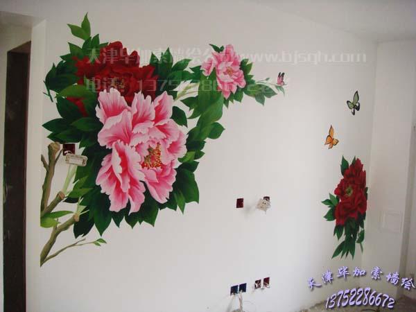 福建里影視墻牡丹彩繪